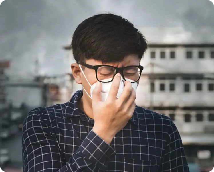 Fine particulate matter and toxins irritate airways, causing inflammation and excess mucus buildup.